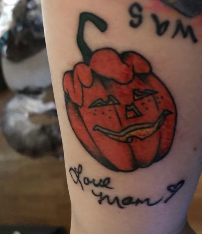 This one is the most sentimental out of my pop culture tattoos. KP would rent The Halloween Tree and Elvira: Mistress of the Dark for us at the beginning of every spooky season. When she was diagnosed with cancer, she got all three of us (my sister being the third person in question) a copy of the novel and wrote an inscription. I got this tattoo a few months before she passed, so she was able to see it, and it made everyone tear up.