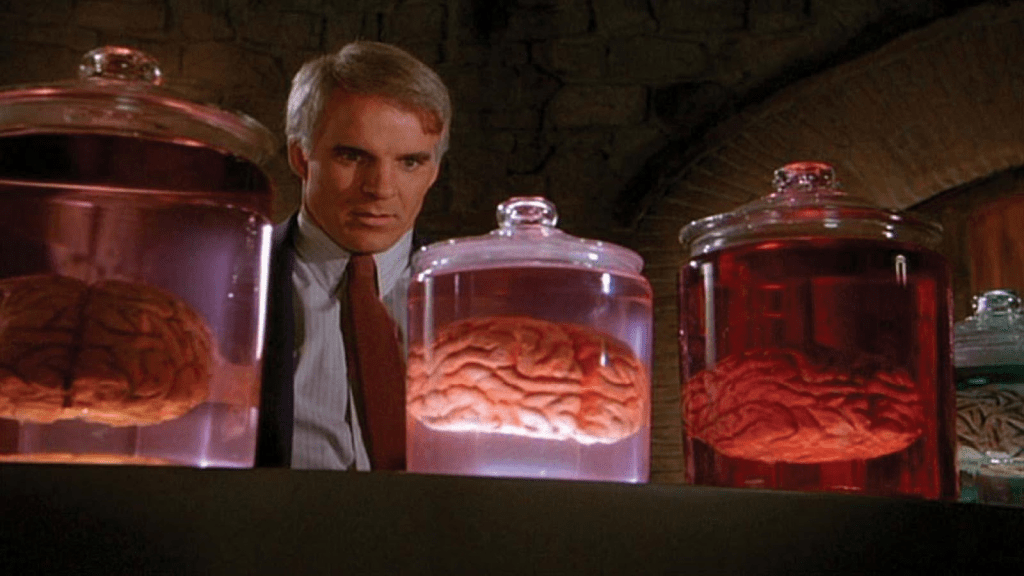 There’s no better way to end this mind marathon than with The Man with Two Brains, a love story…that also involves telepathy, meta commentary, and so much more (again, I know there’s some problematic content in this one, and please know I don’t condone it).